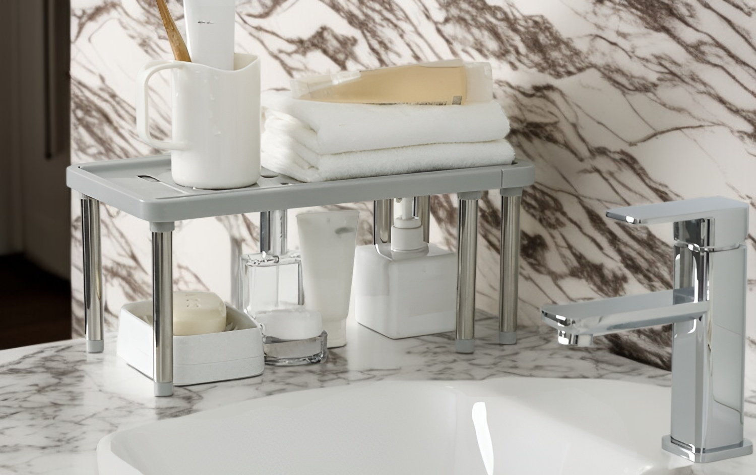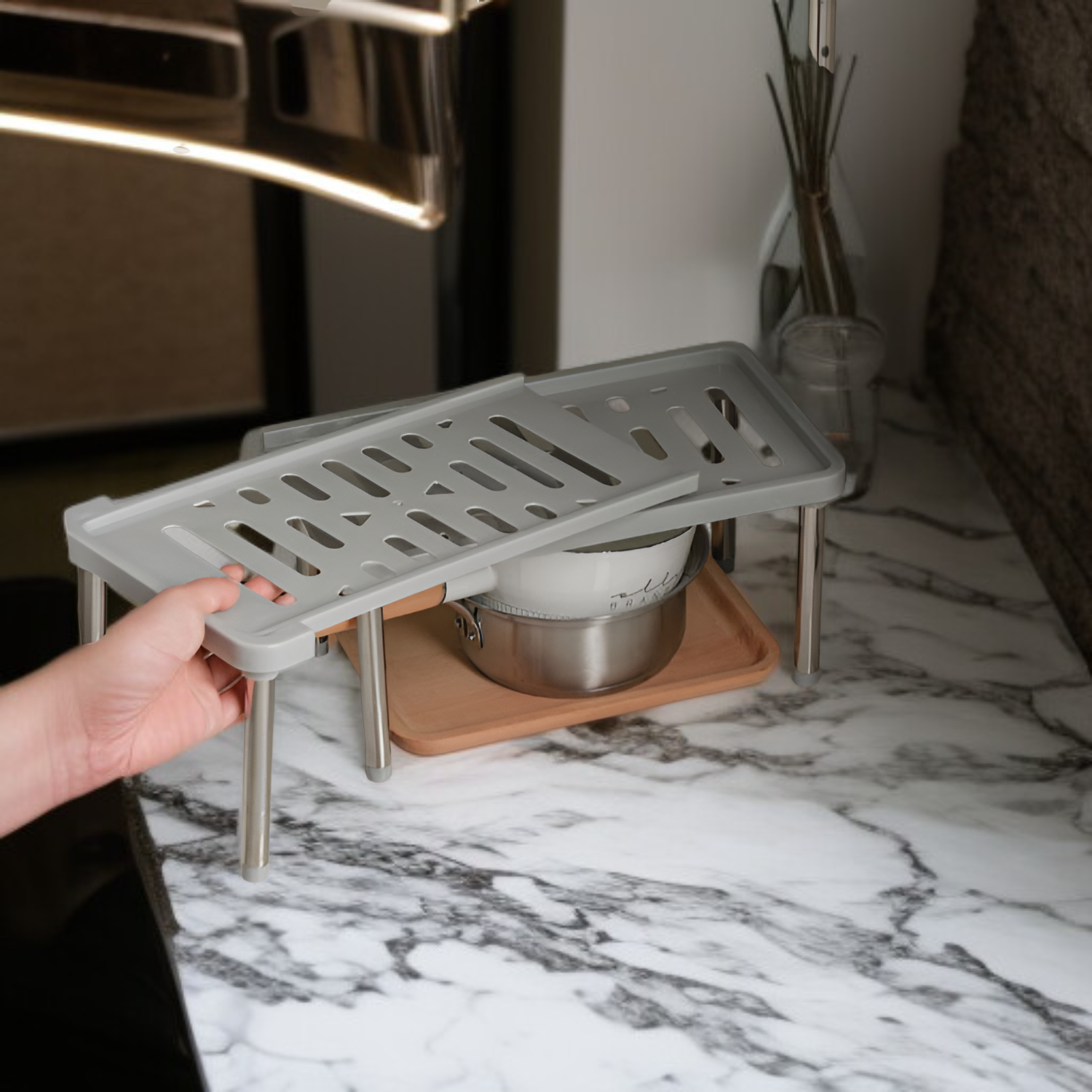 신축 가능한 탈부착 스탠드로 주방 공간 효율 극대화, 설치와 분리 간편, 다양한 용도 활용 가능, 견고한 내구성.